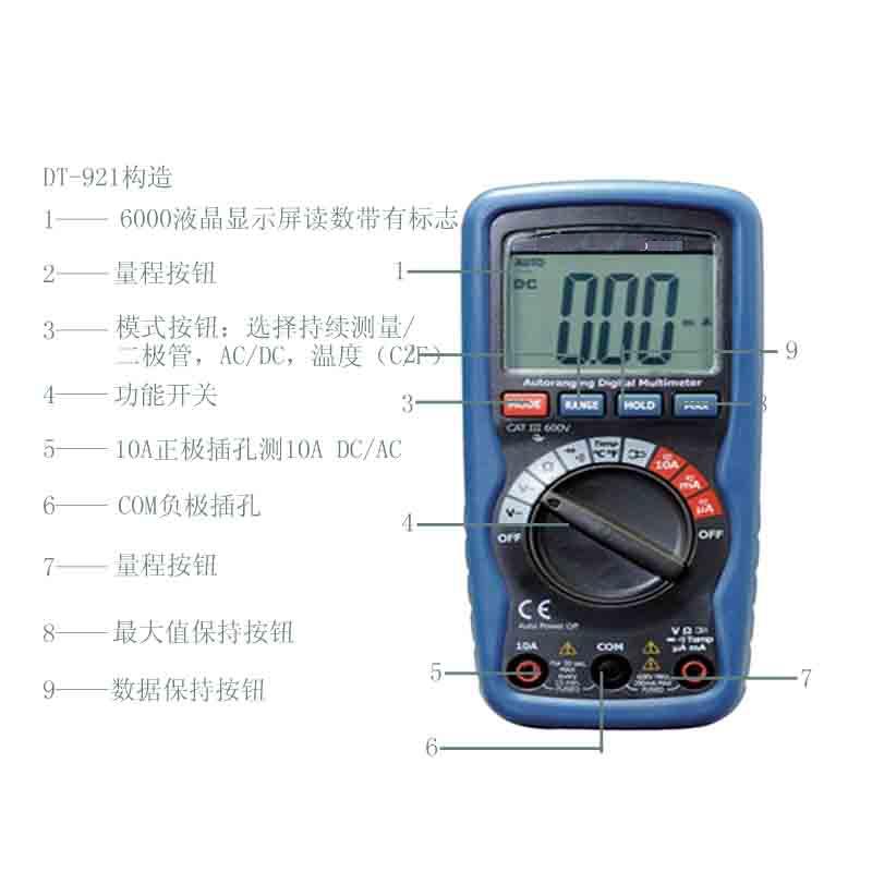 DP-921具備了安全外殼設計和超大液晶顯示屏,為更加安全的測量提供了保障. 這款表集合了精確度高、使用便捷,安全可靠的特點,符合CAT III 600V安全指標.