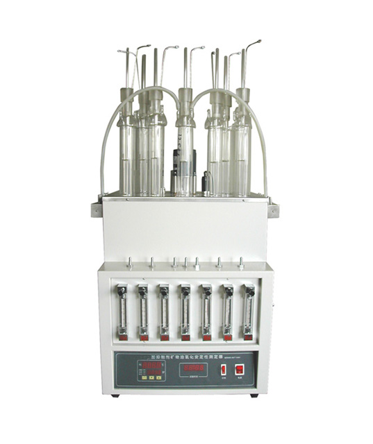 性能特點: 儀器采用智能數(shù)顯控溫, 控溫范圍和精度:200±0.5℃,單片機計時報訊,金屬浴,七孔位,其中1個測溫孔位,6個試驗孔位,6流量計