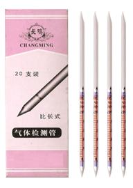 產品簡介: CO、CO2、H2S、O2、SO2、NH3等檢測管的基本測定原理為線性比色法,即被測氣體通過檢定管與指示膠發生有色反應,形成變色層(變色柱),變色層的長度與被測氣體的濃度成正比。
