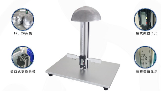 產品簡介: 根據安全帽最新國標GB/T 2812-2006《安全帽測試方法》、GB/T 2811-2007《安全帽》研制,專業用于測量安全帽的垂直間距和佩戴高度
